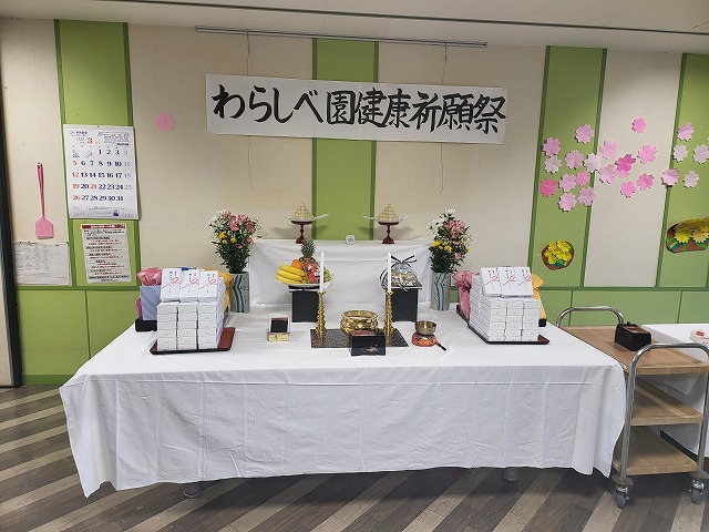 3月30日(木)、毎年恒例の健康祈願祭が行われました。町内旭町・圓久寺の古田住職により、浦河わらしべ園全ての利用者並びに職員の健康と安寧、地域の安全祈願とともに、令和4年度にご逝去された利用者方々のご冥福を祈って頂きました。![]()