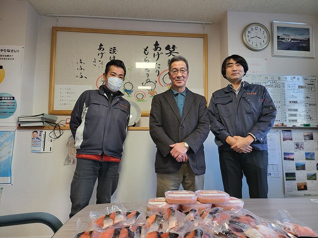「丸十漁業」様からは、日高沖で採れたブランド鮭「銀聖」の切り身といくらしょうゆ漬けをたくさんいただき、クリスマス会で利用者一同で頬張りたいと思っています。毎年ありがたくいただいております。![]()