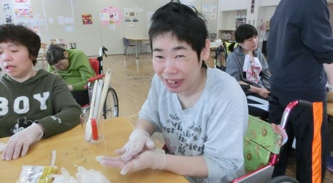 令和2年3月19日、大滝わらしべ園では利用者自治会の行事として「白玉だんご作り」を行いました。