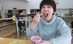 調理中は、率先して職員のお手伝いをする利用者様、ニコッと嬉しそうに笑いながら作業する利用者様、その様子を車いすから身を乗り出して見ている利用者様など、普段なかなか経験できないことに興味津々で楽しんでいました。