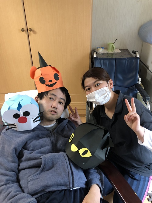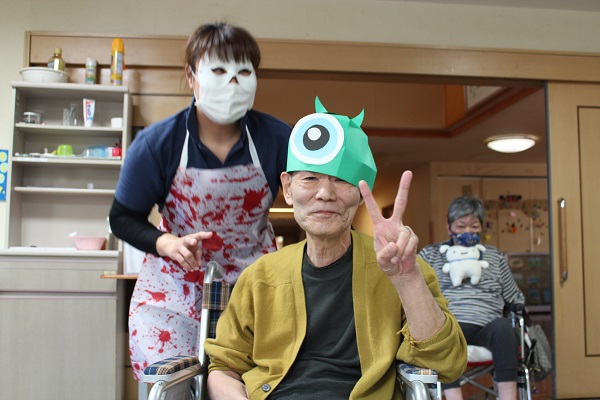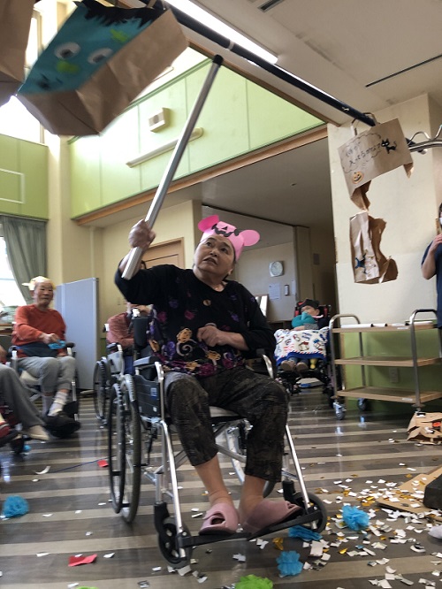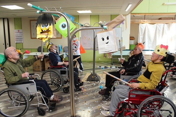 食堂では、悪霊に見立てたピニュータを割りみんなで退治したり、個室にも訪問しいろいろな仮装で職員、利用者みんなで悪霊を追い払いました( `ー´)ノ