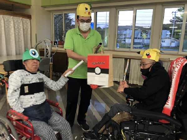 そこで、今年は浦河わらしべ園でも、海や山の収穫に感謝し「コロナ」という悪霊を退治するため、職員総出でレクレーションを考え、利用者とともに「大ハロウィン」を開催しました(=゚ω゚)ノ