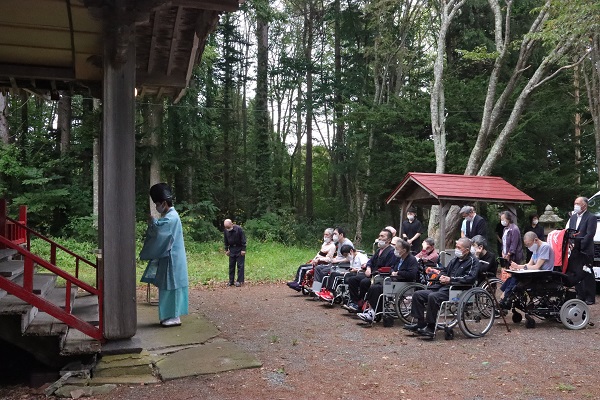 その後、場所を移し園の近くにある西舎神社にて、交通安全の祈祷を行いました。