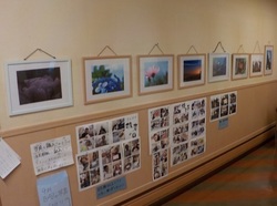 カメラ好きの職員が浦河わらしべ園近郊の 草花や鳥獣の姿を撮ったかわいらしい写真が、食堂や廊下に張り出され、利用者も興味津々で見られています。