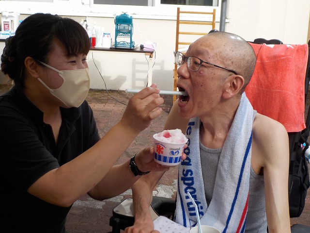 一番人気はやはり「いちご」でしたが、トッピングに「練乳」や「カルピス」等皆さん思い思いの味を作っていました。