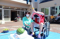 8月17日午前中に陽ざしが暑いなかスイカ割りを行いました。